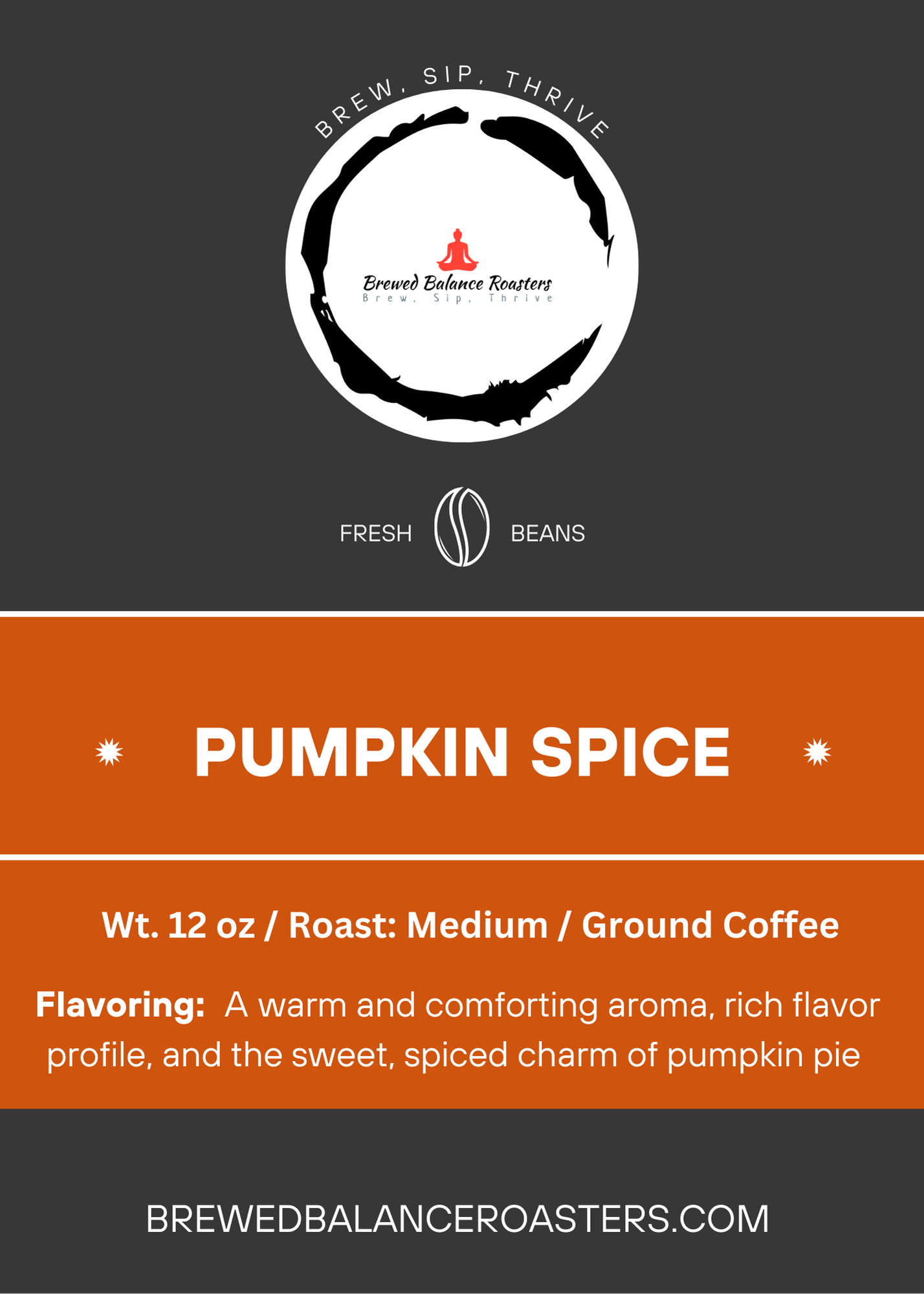Pumpkin Spice is a rich, full-bodied medium-roast coffee. Pumpkin Spice flavored coffee beans capture the essence of autumn in a cup. With their warm and comforting aroma, rich flavor profile, and the sweet, spiced charm of pumpkin pie, they offer a delightful coffee experience that's perfect for savoring during the fall season.
